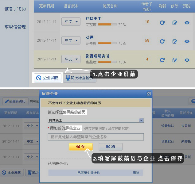 躲着上司偷偷投简历就够辛苦了,还要谨防被自己公司的HR在智联上看到你在投简历!?把它屏蔽掉就好了,嘘...