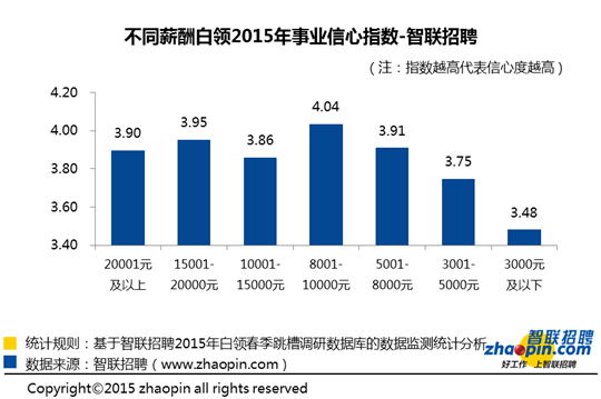 【就业指导】薪水越多对事业越有信心?白领表示“高处不胜寒” ————《智联招聘2015年春季白领跳槽指数调研报告一》