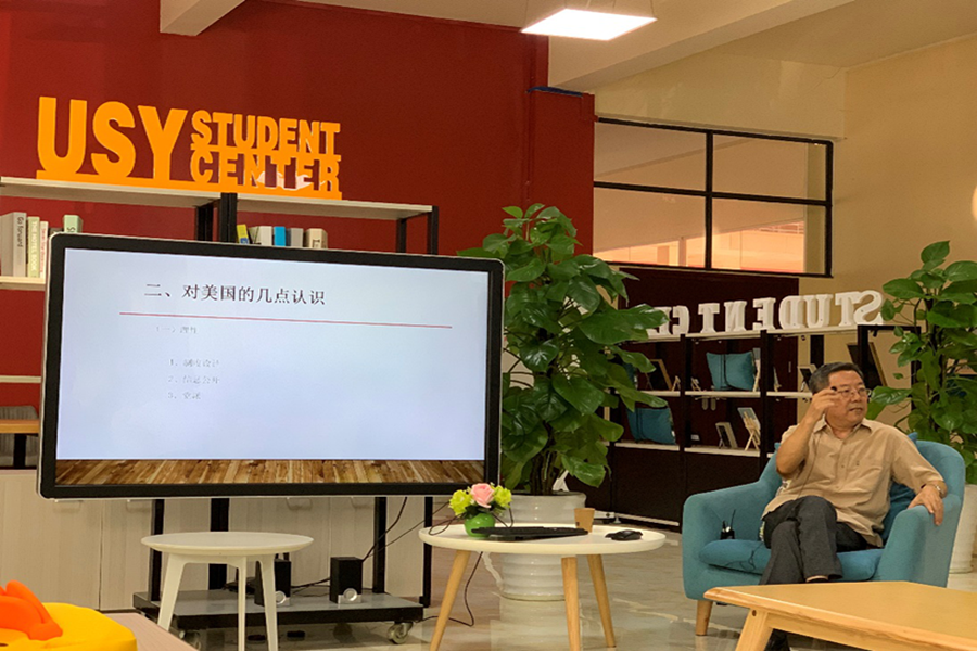 张敏谦教授博古通今,幽默风趣,在简单讲述了自己几十年来在中美关系领域的学术研究历程后,与我们分享了他对美国的一些认识。讲座最后,张敏谦教授与在场同学就中美关系等问题进行了探讨,并对同学们提出的问题做出了详细解答,赢得了同学们热烈的掌声。