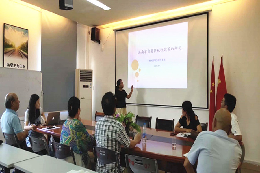 2019年5月15日下午四点,会计专业在财经学院会议室举办本专业第六次专业活动,会议的主题为郭慧玲老师做关于《海南省自贸区税收政策的研究》的学术讲座。参会的有陈曦、储海林、聂洁萍、邢国繁、杨闻君、王一帆、石鑫、范晓慧8位老师。
