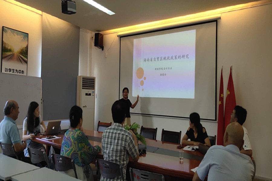 郭慧玲老师首先向大家介绍了本次学术报告的研究来源:2018年4月13日,习近平在庆祝海南建省办经济特区30周年大会上郑重宣布设立海南自由贸易港。而税收作为国家财政收入的重要途径,不断推动着社会经济持续、快速、协调地发展。结合税收政策执行过程和税收工作结果,目前,海南省的税收水平不高,税收政策仍不健全,税收政策模式仍不完善,税收执行过程中存在的问题仍需解决。所以,基于海南省的经济发展历史与发展现状和优越的贸易地理位置,寻求“因地制宜”的税收政策迫在眉睫。其次,对海南省经贸发展的税收政策状况与评析,以及海南省借鉴上海自贸区税收政策、世界各自贸区的客观需求,最后着重讲述了海南省借鉴上海自贸区及世界各自贸区的税收政策措施。