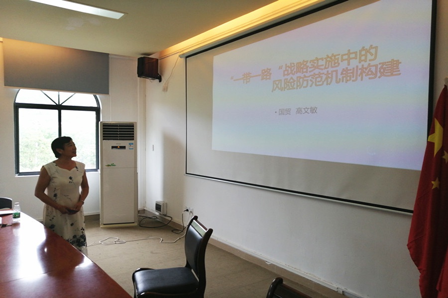 在5月27日下午,财经学院国贸专业的老师听取了高文敏教授的科研报告。高文敏老师讲的题目是:“一带一路”战略实施中风险防范机制的构建。这个题目是高文敏教授在今年1月为专业老师所做讲座的后续研究。