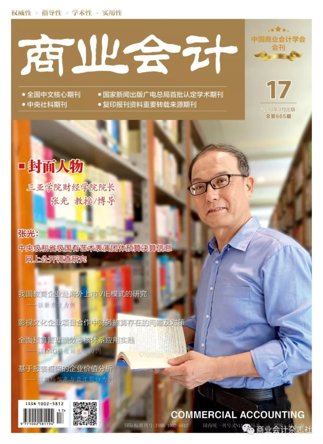 日前,《商业会计》杂志2019年9月第17期刊物出版,财经学院院长张光教授荣登封面人物。该刊还登载了张光院长和大四会计专业本科生王易共同撰写的题为《中央级和省级国有艺术表演团体预算决算信息网上公开调查研究》的学术论文,全文13000多字。国有艺术表演团体的预算决算和财务信息公开状况,尚未获得学界的研究。该文章通过对我国中央级和省级国有事业和企业院团的2017年预算决算网上公开状况做一个初步的评估,填补了这个学术和政策研究空白。
