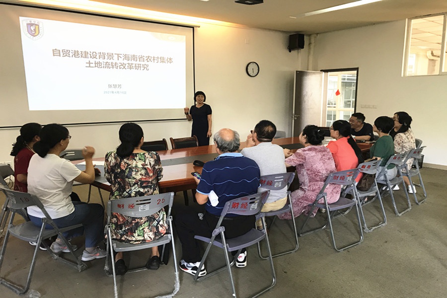 2021年4月16日,财经学院张慧芳教授在423会议室作了题为“自贸港建设背景下海南省农村集体土地流转改革研究”的讲座。张慧芳教授从海南省自贸港建设的背景和海南省作为农业大省的省情出发,讲解如何通过推进海南省农村集体土地流转为自贸港建设提供有力的土地支撑。