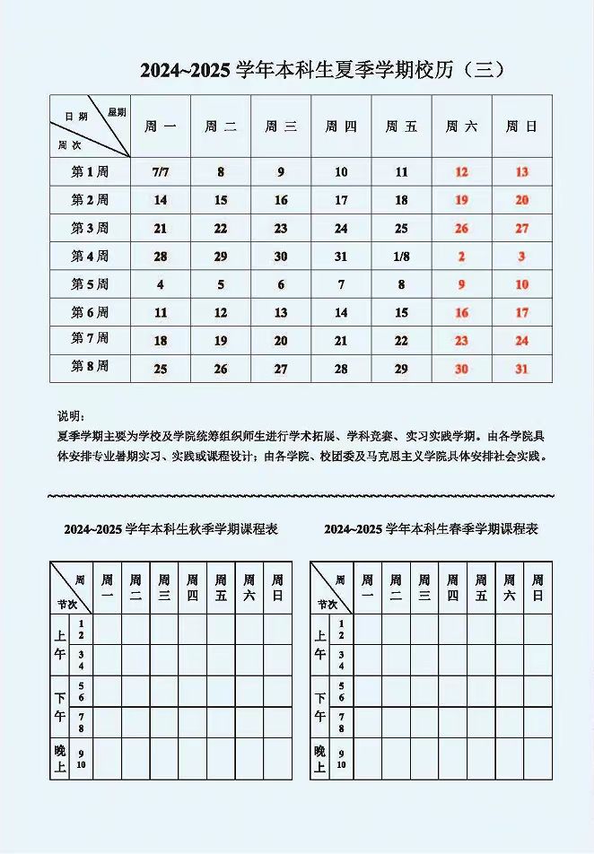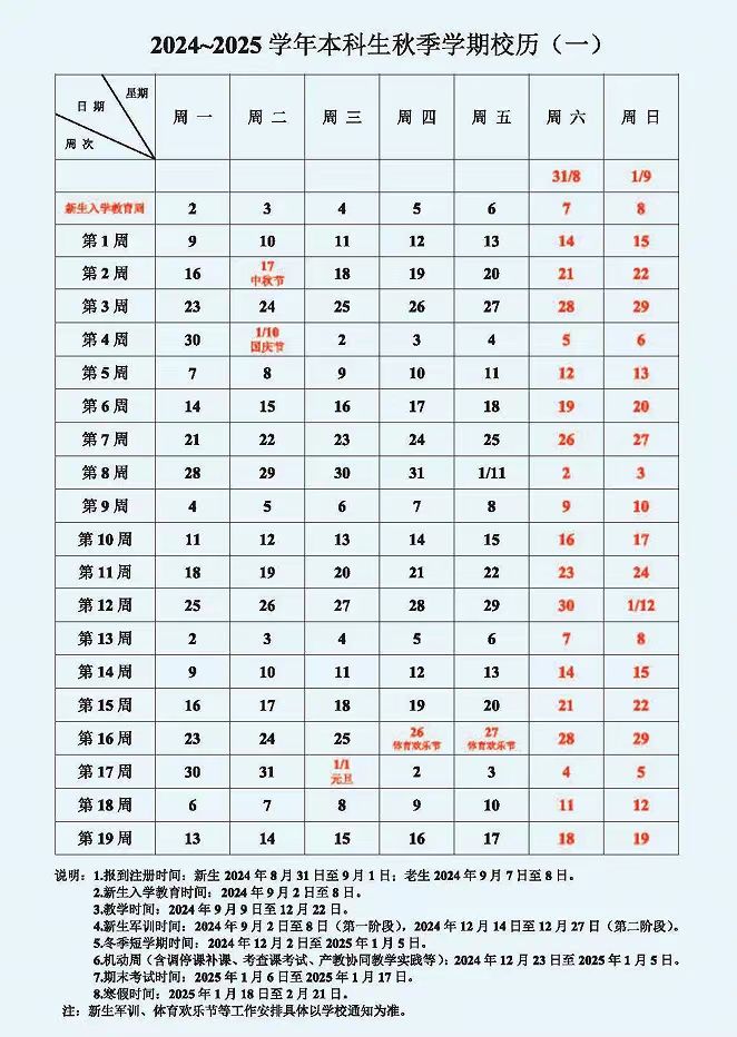 请接收 最新校历!