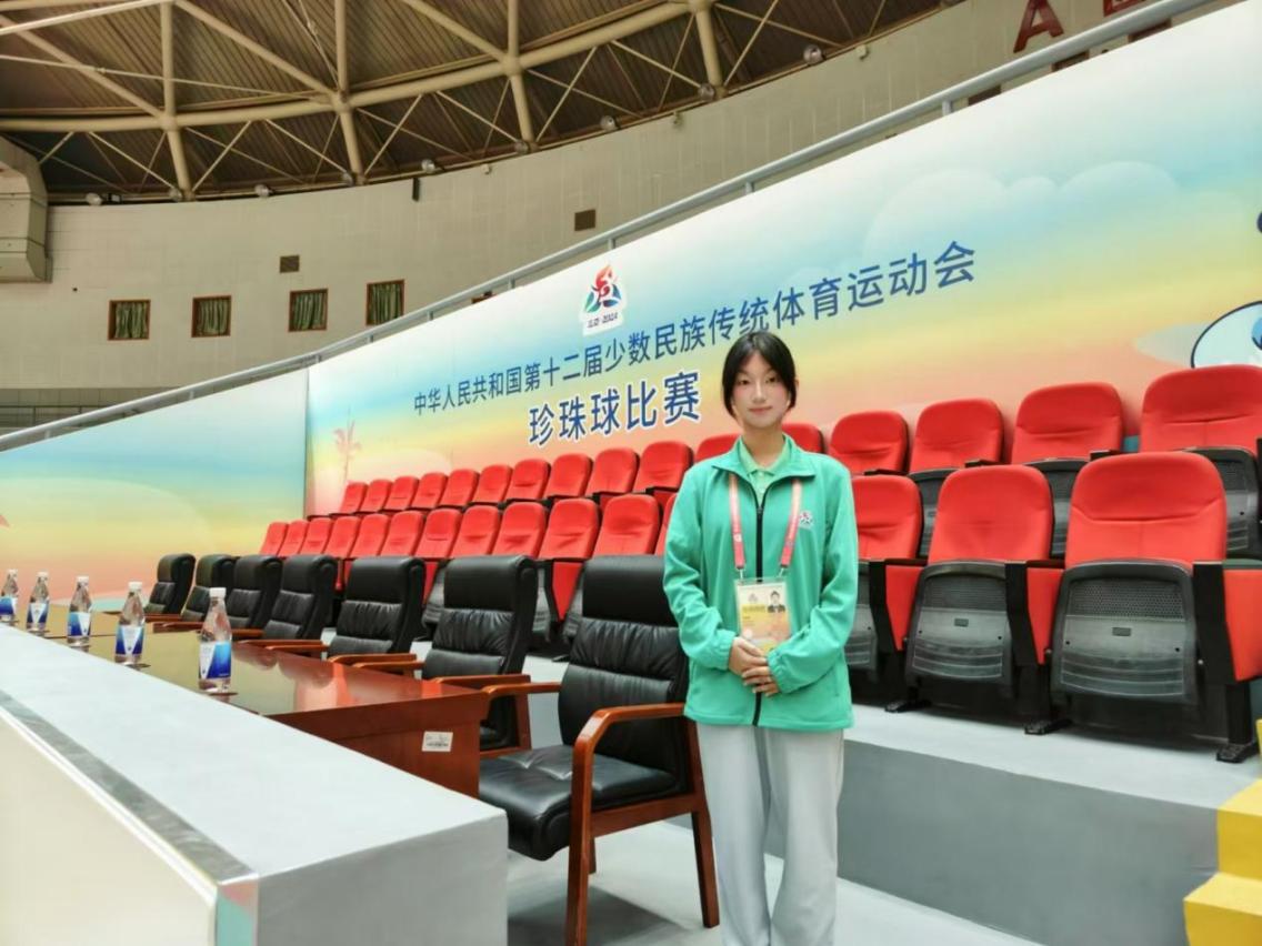 非常荣幸可以成为第十二届少数民族运动会的志愿者,作为珍珠球赛馆信息技术组的志愿者,我的职责是专注录制比赛现场,为后期审查留存资料。工作时,我们需要全身心沉浸在珍珠球体育赛事里,时刻关注珍珠球的运动,紧盯屏幕、把控设备,确保每个画面精准收录。初遇复杂录制系统,操作生疏,在带队老师的悉心指导下,不断熟悉设备,我们有序分配好工作时间,保证集中注意力认真完成工作。
