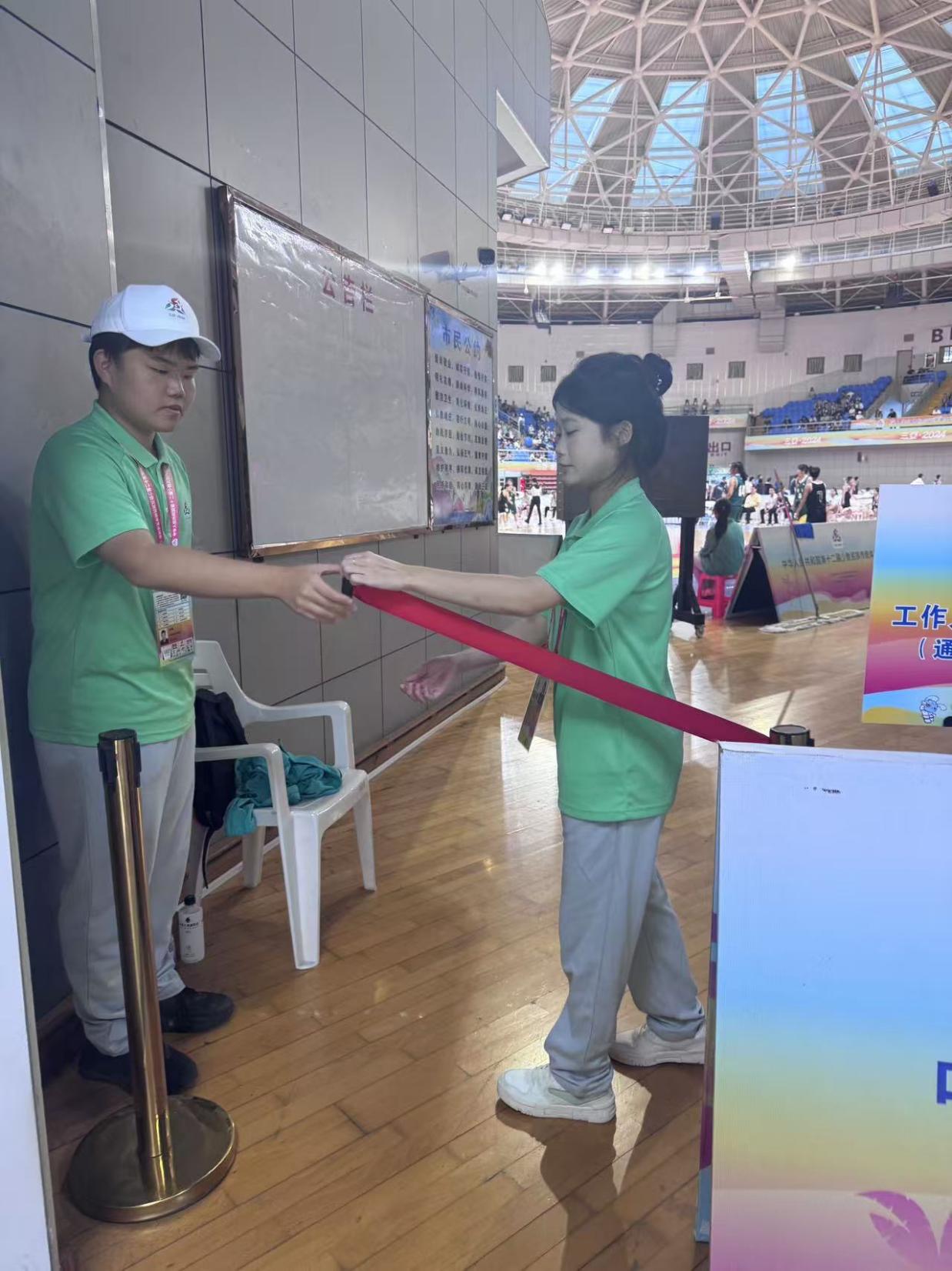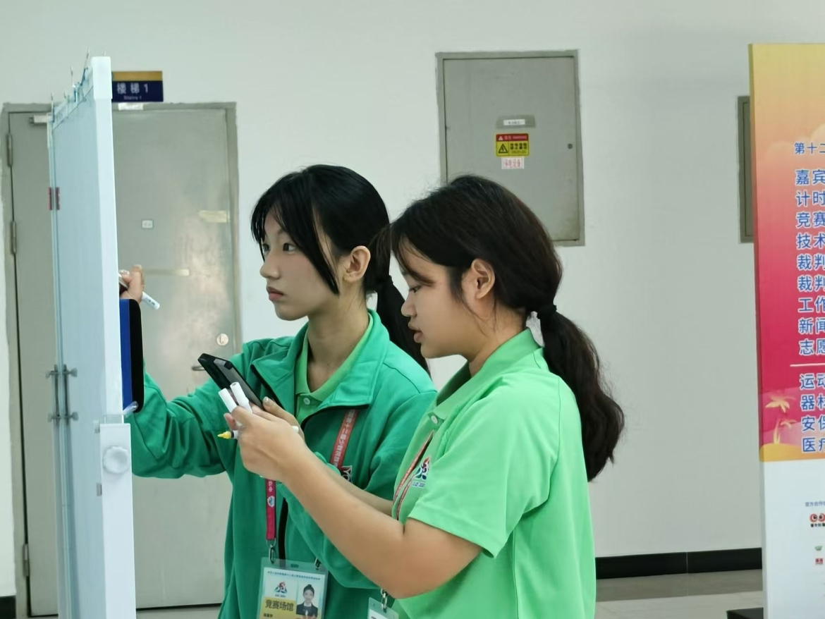 在志愿服务过程中,管理学院的志愿者们充分展现了他们的专业素养和团队协作能力。他们不仅为参赛队员们以及观众提供周到细致的服务,同时,面对赛场上可能出现的突发情况,志愿者们也能够迅速反应,妥善处理,确保比赛的顺利进行。