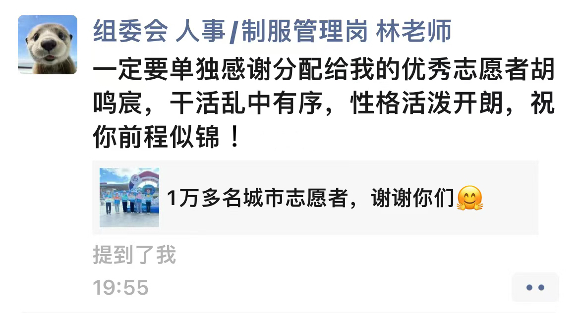 我院人力2301班徐启亮同学受到运动员的当面感谢和点赞