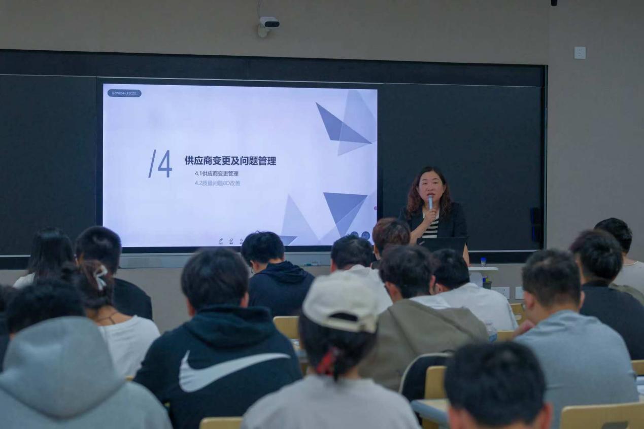 11月29日上午,吉利中央SQE赵建岭老师在书新一号楼103教室,为同学们带来了一场关于质量及质量管理基础知识、供应商选择及评价的专业授课。
