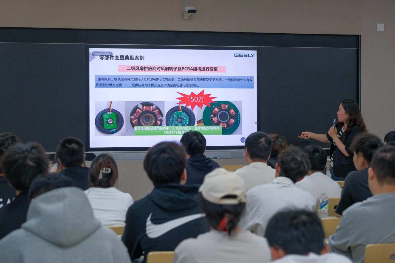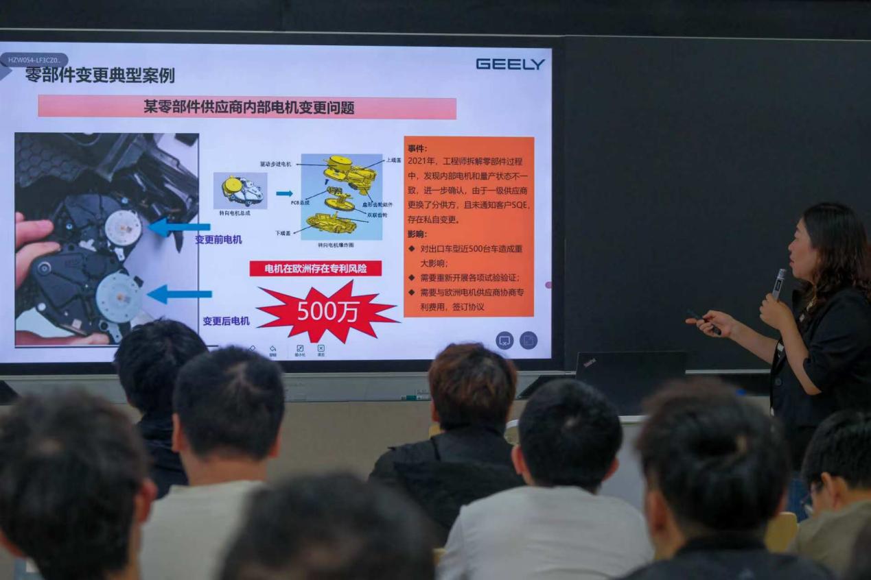 活动中,赵老师还重点讲解了变更管理的相关内容。吉利内部已建立了完善的变更管理流程,包括变更申请、评审、验证等环节,以确保变更不会对产品质量和供应链稳定性造成影响。