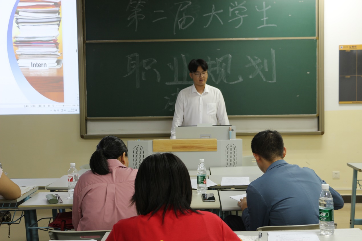 本次校赛决赛中,晋级校赛的选手们不仅要在规定时间内完成更为详尽的职业规划演讲和展示,还需接受来自评委老师的提问,这考验着他们的应变能力和对职业规划的深度理解。在这场充满智慧交流与激情碰撞的比赛中,我院郝春洋和王俊涵凭借扎实的准备与深刻的见解,展现出了不俗的风采