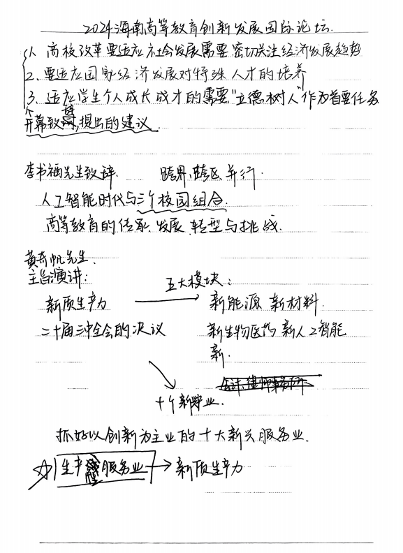 很荣幸能够参加此次海南高等教育创新发展国际论坛。通过此次创新发展国际论坛,我更加深入了解了产教融合、科技创新以及发展新质生产力的意义。立足于我们大学生自身,可以让我们更快的适应社会的快速变革,有效解决毕业即失业的现实问题,适应我们成长成才的需要。立足于经济,有可能改变国际贸易格局,推动经济发展。立足于国家,与国家战略对接,培养更多的人才,助力国家发展。