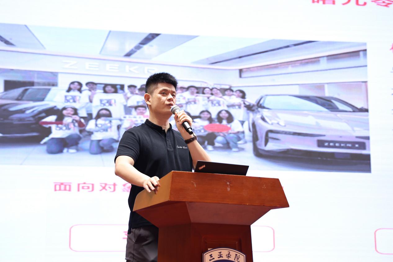 12月11日,极氪&三亚学院曙光实习班宣讲会在书山馆报告厅成功举行。本次宣讲会由极氪用户端南区HR负责人刘伟鹏主讲,我院领导班子、2022级思想导师及各专业四百余名学生共同参加了本次宣讲会。