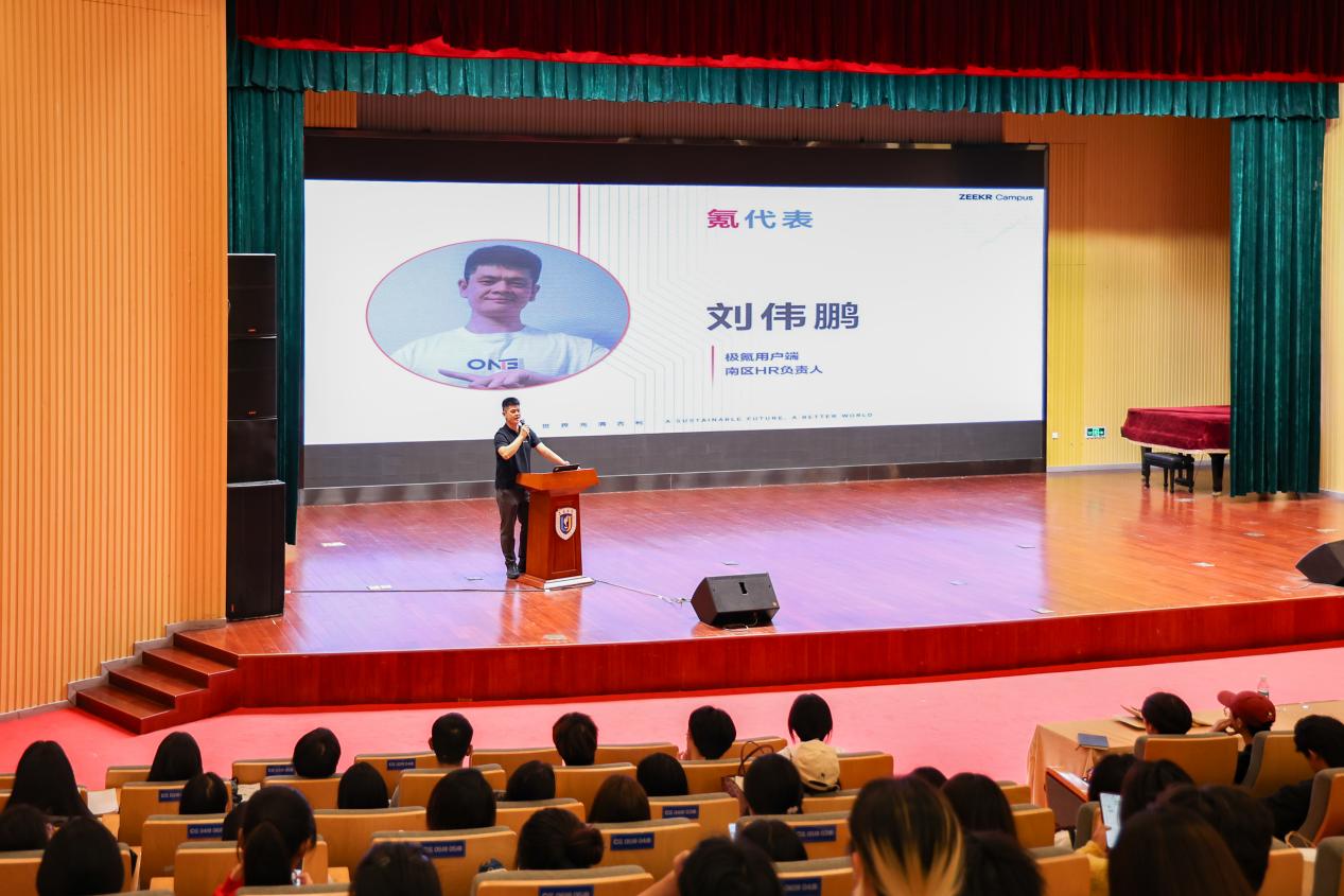 活动中,极氪用户端南区HR负责人刘伟鹏向学生们全面展示了极氪汽车的魅力与实力,鼓励同学们踊跃参与,开启职业新征程。