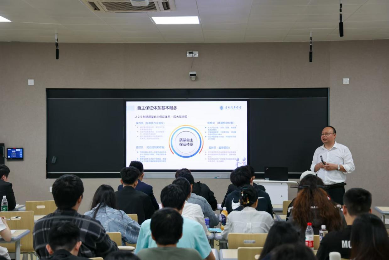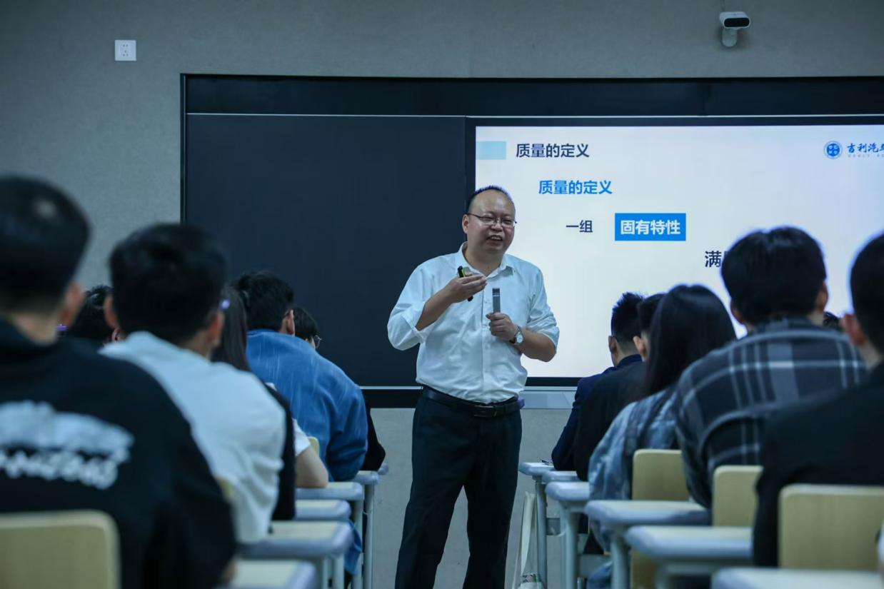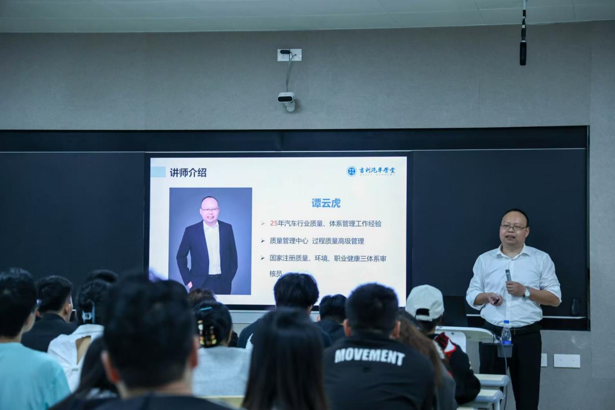 12月12日,吉利集团过程质量管理高级经理谭云虎莅临我院,为利WP计划-汽车供应链质量管理精英班的全体学员带来了一场精彩的产教融合课程——《制造质量自主保证体系》。此次课程在学院1西103智慧教室成功举行,标志着精英班第四阶段行业专家课的正式启动。