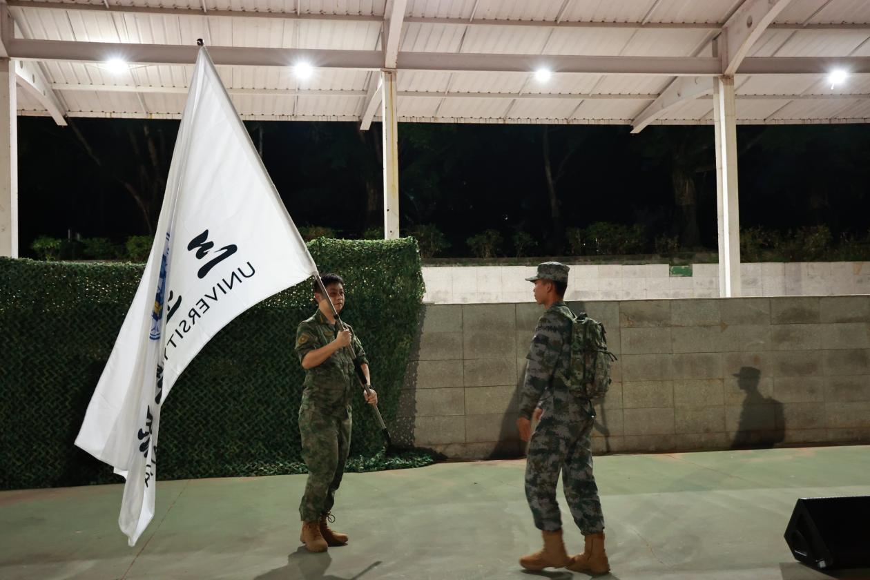 清晨6:30,随着集合哨声的响起,新生们身着统一的迷彩服,精神抖擞地列队站在操场上。首先由学生处田希老师开场致辞,他激励同学们要勇于面对挑战,展现三亚学院学子的风采。随后,庄严的国歌声响起,嘹亮的歌声回荡在操场上空,激发了学生们的爱国情怀和集体荣誉感。学生处孙凡处长进行授旗仪式,将代表着荣誉与责任的旗帜交到了教官代表手中。最后,孙凡处长宣布拉练活动正式开始。