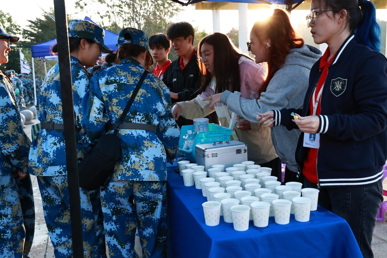 本次拉练活动得到了学校各部门的精心组织与保障。医疗小组全程随行,配备充足的药品和急救设备,确保学生在出现身体不适时能得到及时救治;各学院在拉练路线沿途设置补给点,为学生提供饮用水和能量补给。我院在书山馆门前书山阁设置了贴心的能量补给站,为拉练的新生们提供基本的休息处、饮用水、应急药物,做好伤病退养等人员收容。