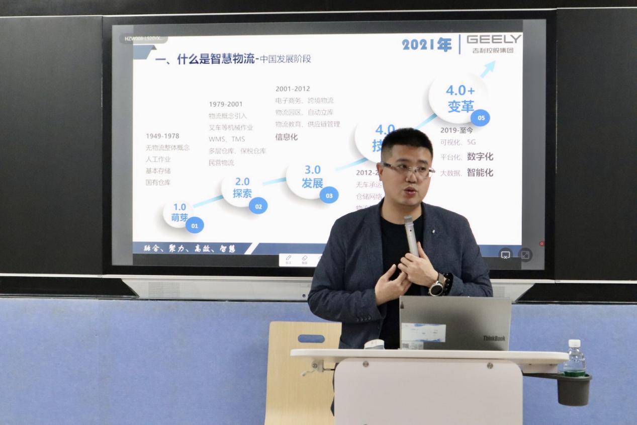 12月27日,吉利集团吉利汽车集团浙江吉速物流有限公司的董庆锋部长,在管理学院的五东101教室,为2022级物流管理等专业的学子们带来了一场精彩的智慧物流知识讲座。