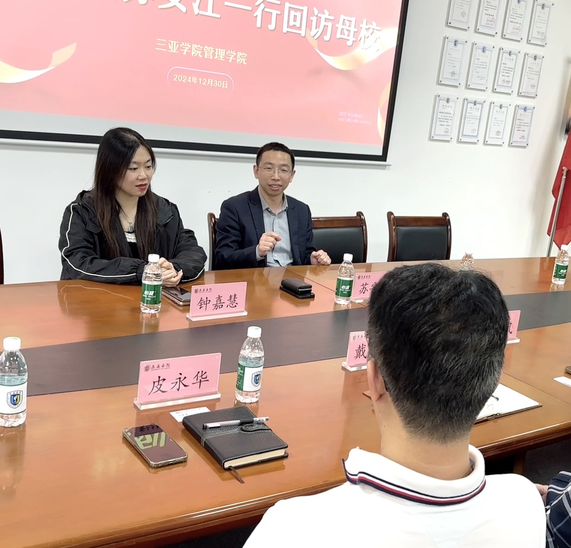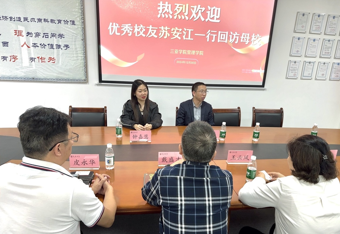 12月30日下午,三亚学院管理学院迎来了一场温馨而充满意义的回访活动,我院2015届物流管理专业优秀校友苏安江携其团队重返母校,与院领导及老师们共叙往昔,展望未来。
