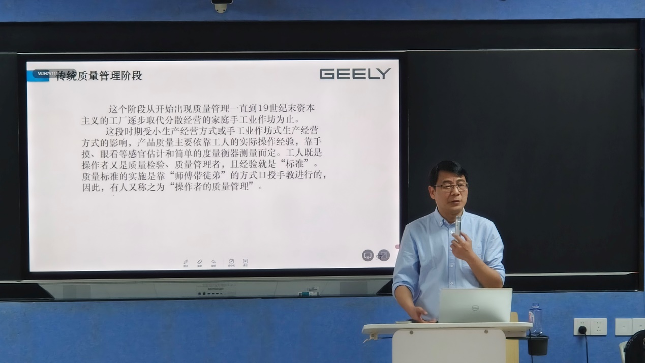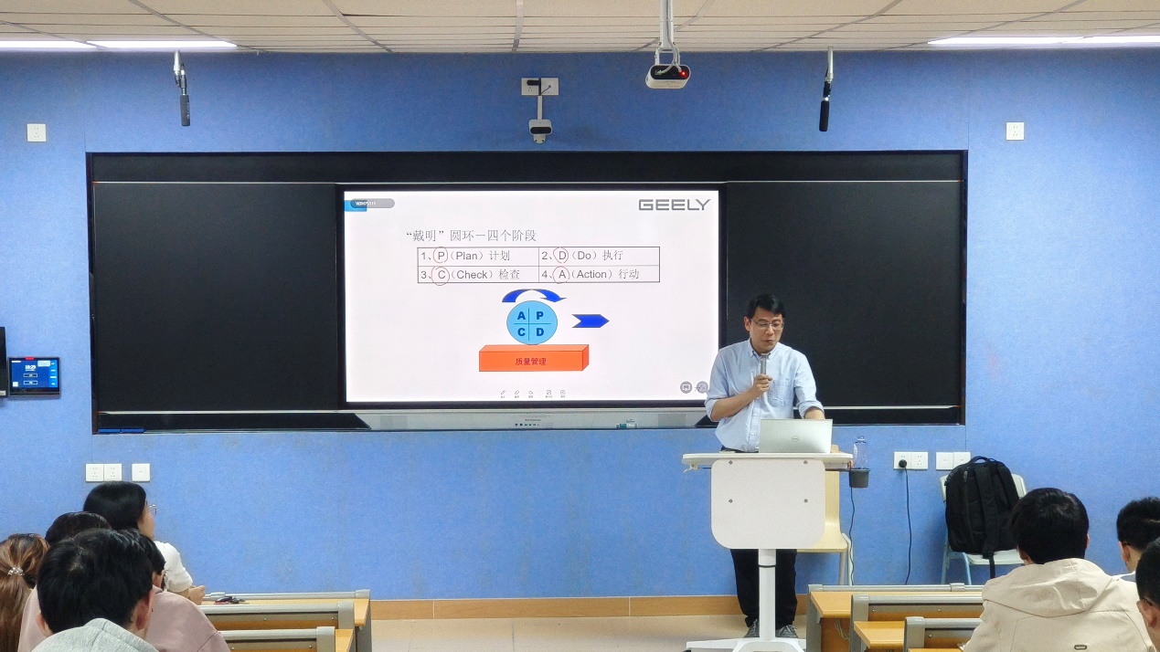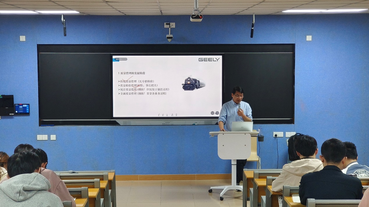 12月30日,吉利控股中央 SQE 中心高级质量体系经理吴建华受邀为我院工商管理和物流管理专业2022级学生讲授全面质量管理基础知识,为同学们打开了质量管理领域的新视野。