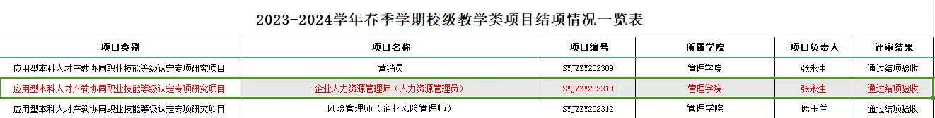 由管理学院申报,人力资源管理专业教师承担的应用型本科人才产教协同职业技能等级认定专项研究项目——《企业人力资源管理师(人力资源管理员)》顺利通过结项验收。