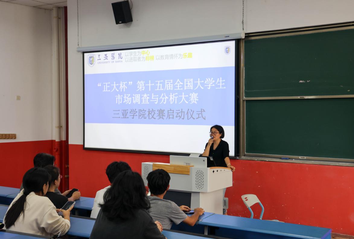 10月30日下午两点,在书德楼413教室,“正大杯”第十五届全国大学生市场调查与分析大赛三亚学院校赛启动仪式成功举行,管理学院副院长皮永华、专业教师杨雅恬、庞玉兰、张成甦及本次大赛部分参赛学生共同参加了本次启动仪式。本次活动由杨雅恬老师主持。