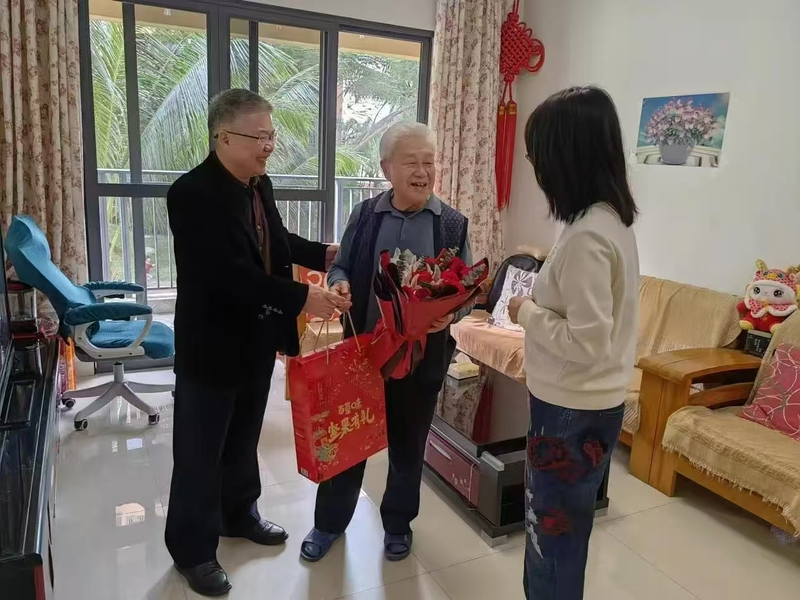 在春节来临之际,校工会代表学校走访慰问回到三亚家里过年的荣休老干部代表。诚挚祝福为学校事业发展做出重要贡献的老干部们蛇年吉祥,福寿安康。