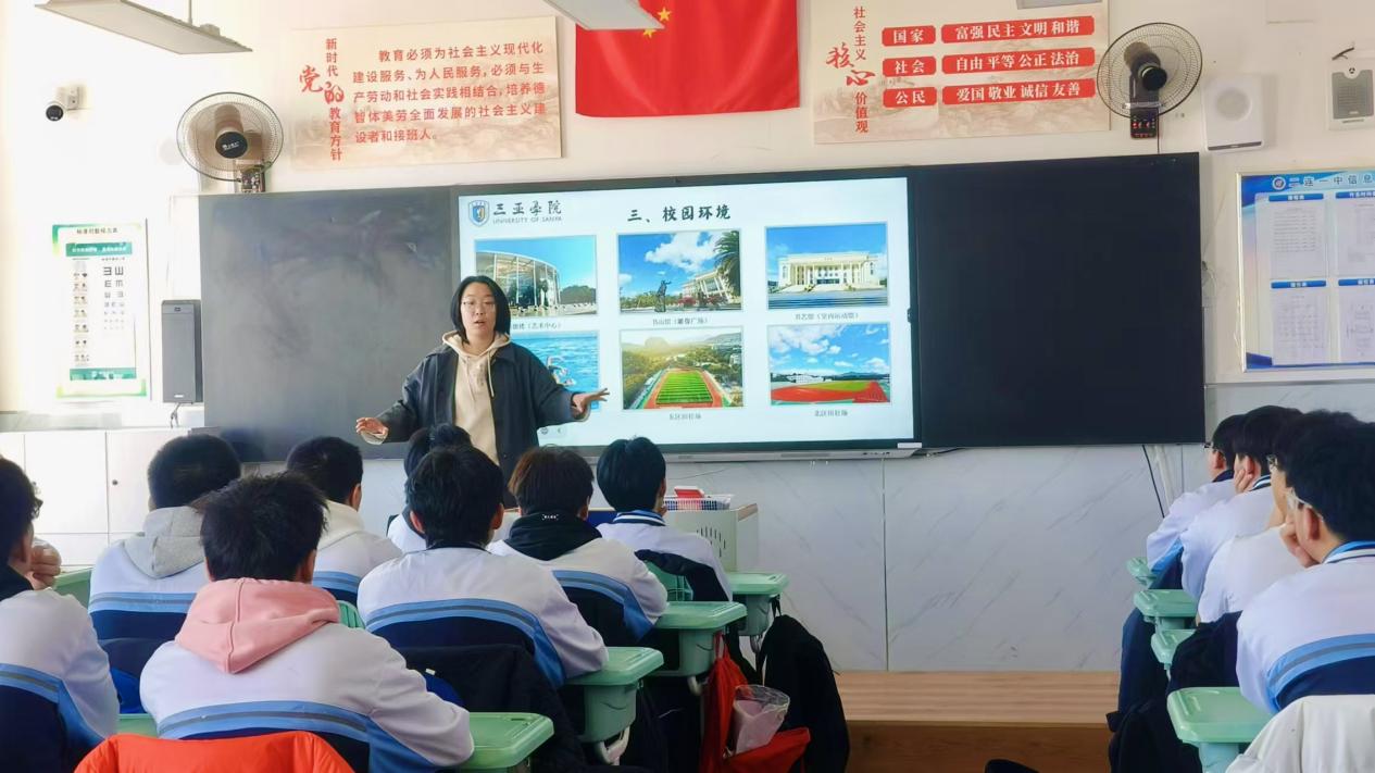 活动当天,陈家乐同学手持精心设计的宣传资料,步入了曾经留下无数回忆的高三教室。面对着一双双充满好奇与期待的眼睛,她以饱满的热情和生动的语言,向学弟学妹们全面介绍了三亚学院的方方面面。从学校的地理位置、校园环境,到办学成效、教育理念,陈家乐同学娓娓道来,让在场的每一个人都仿佛置身于三亚学院的美丽校园之中。
