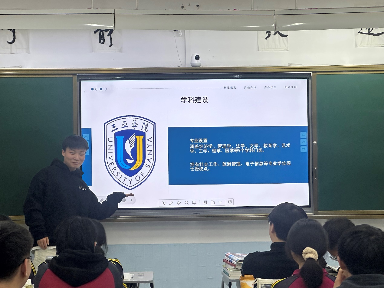 这一次,我不是以学生的身份回归,而是作为一名“使者”,带着我的大学——三亚学院和对大学生活的无限感慨与憧憬,来为学弟学妹们描绘一幅多彩的大学画卷。而当我真正站上讲台,面对着一张张稚嫩而充满好奇的脸庞,那份属于学生的青涩与纯真仿佛又回到了我的身上。