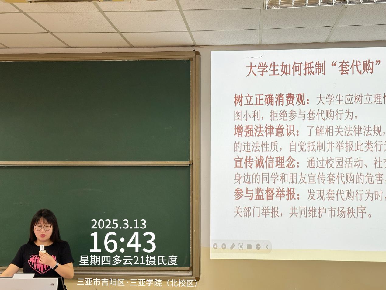 此外,班会还结合实际案例,深入剖析了“套代购”行为对个人、社会及国家的危害,以及学习如何抵制“套代购”。