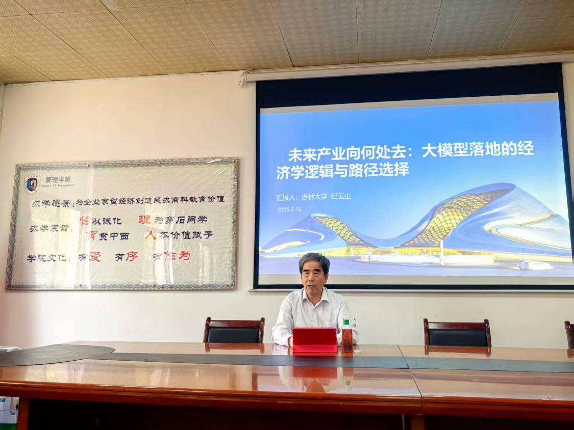 2025年3月12日,吉林大学纪玉山教授莅临三亚学院管理学院,在社科楼206会议室为管理学院中青年教师带来了一场题为《未来产业向何处去:大模型落地的经济学逻辑与路径选择》的精彩学术讲座。
