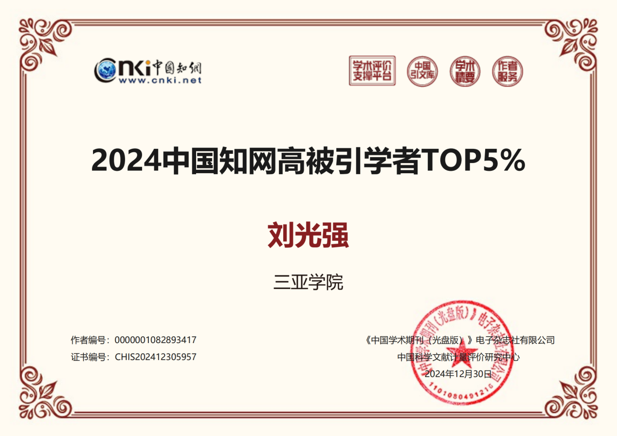 近日,财经学院刘光强教授荣幸入选2024年度中国知网高被引学者Top5%。这一成就不仅是对刘光强教授个人学术造诣的高度认可,更是财经学院在学术领域蓬勃发展的有力见证。刘光强教授有着怎样的学术故事和深刻感悟?又能为青年学者和学术界未来发展带来哪些宝贵经验与启示?让我们一同走进刘光强教授的学术世界。
