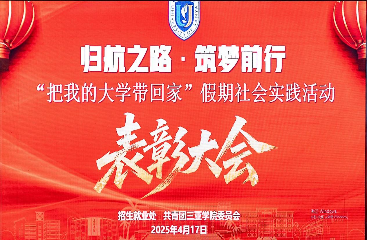4月17日下午,三亚学院书会堂内星光熠熠,2025“把我的大学带回家”活动表彰大会在此盛大启幕。此次大会不仅是对寒假实践活动成果的检阅与嘉奖,更是为师生们搭建了一个交流经验、展望未来的平台。校领导、招生与就业处领导,各学院领导、思想导师与志愿者代表共同参会。我院团委副书记王娜老师,思想导师符彩花、高雯晶、李明唐以及志愿者代表共同见证这一荣耀时刻。
