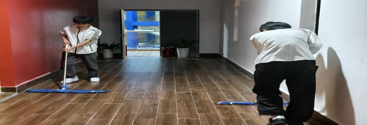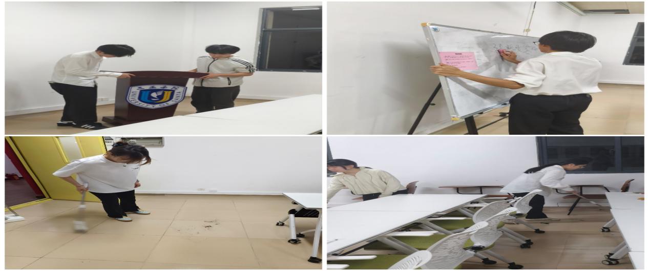 经过大家几个小时的共同努力,会议室和学院办公区域焕然一新,地面更加干净整洁,桌椅摆放得井井有条,门窗明亮如镜,花草也更加生机勃勃,营造出了整洁明亮、舒适的学习和工作环境。