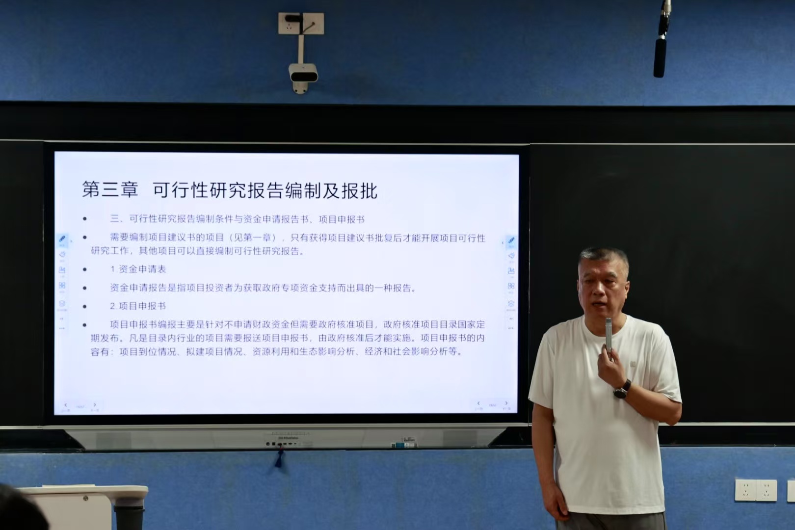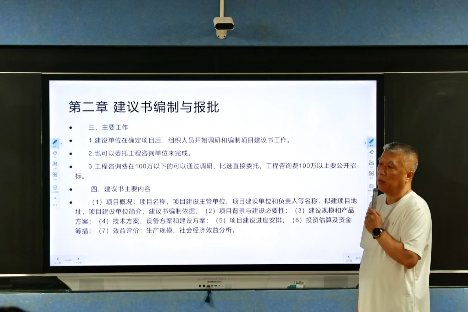 随后,课程聚焦项目建议书编制与报批、可行性研究报告编制及报批等核心内容。在讲解项目建议书编制时,王老师从建设单位自主调研编制到委托工程咨询单位的流程讲起,详细说明了以100万咨询费为界的委托方式差异。同时,对建议书包含的项目概况、背景必要性等七大内容进行了层层剖析,让同学们对项目建议书的编制有了全面而深入地认识。