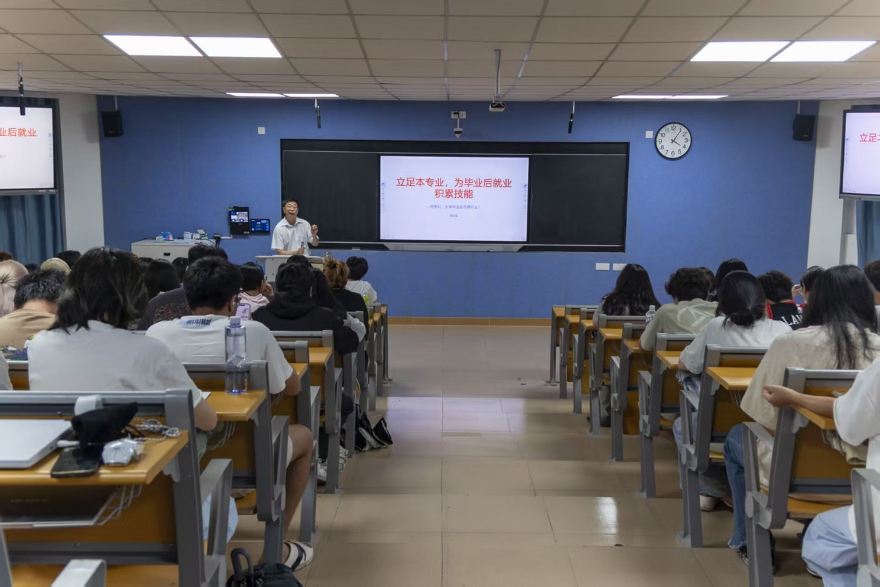 为进一步深化产教融合,创新人才培养模式,6月10日,在5东101教室,我院特别邀请到海发控智宇科技有限公司徐忠国经理为物流2401、跨境2401、数字营销2401、供应链2401四个专业的大一学生带来了一场极具启发性的课程——《立足本专业,为毕业后就业积累技能》,成功搭建起理论与实践的坚固桥梁,助力学生们开启专业探索的崭新旅程。