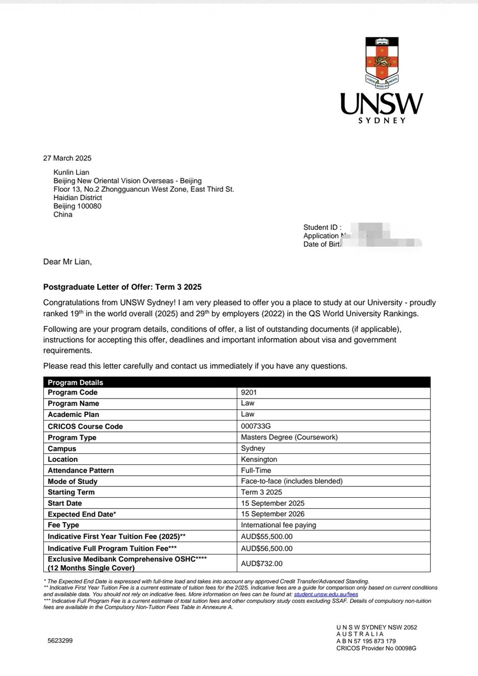 考研征程告一段落,我已经收到新南威尔士大学,悉尼大学,英国诺丁汉大学等多所名校的offer。而今年九月,我就要踏上前往澳大利亚新南威尔士大学的留学征程啦。四年时光转瞬即逝,跟着老师系统学习专业知识,再利用课余广泛阅读,是学好专业课的良方。但“准法律人”可不能只埋头书海,表达能力同样重要,得学会把复杂的法条讲得通俗易懂,让法律真正走进生活。而在中银律所实习的日子,也让我进一步真切的感受到法律的温度。胜诉固然是目标,可赢得当事人的信任、收获好口碑,才是法律人安身立命的根本。