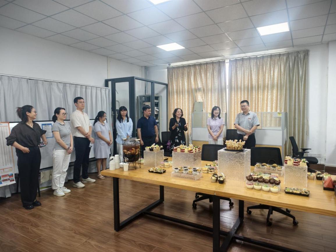 2025年7月7日上午,管理学院院长王云凤教授、党总支副书记陶信伟、院长助理张成甦副教授、学院办公室梅丹老师前往学校招生就业处,看望慰问奋战在招生工作一线的工作人员,并为大家精心准备了温馨茶歇。