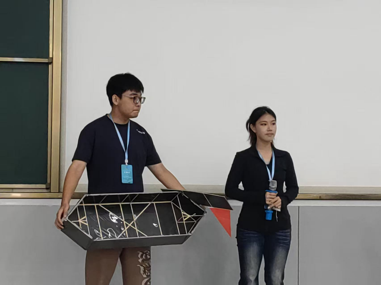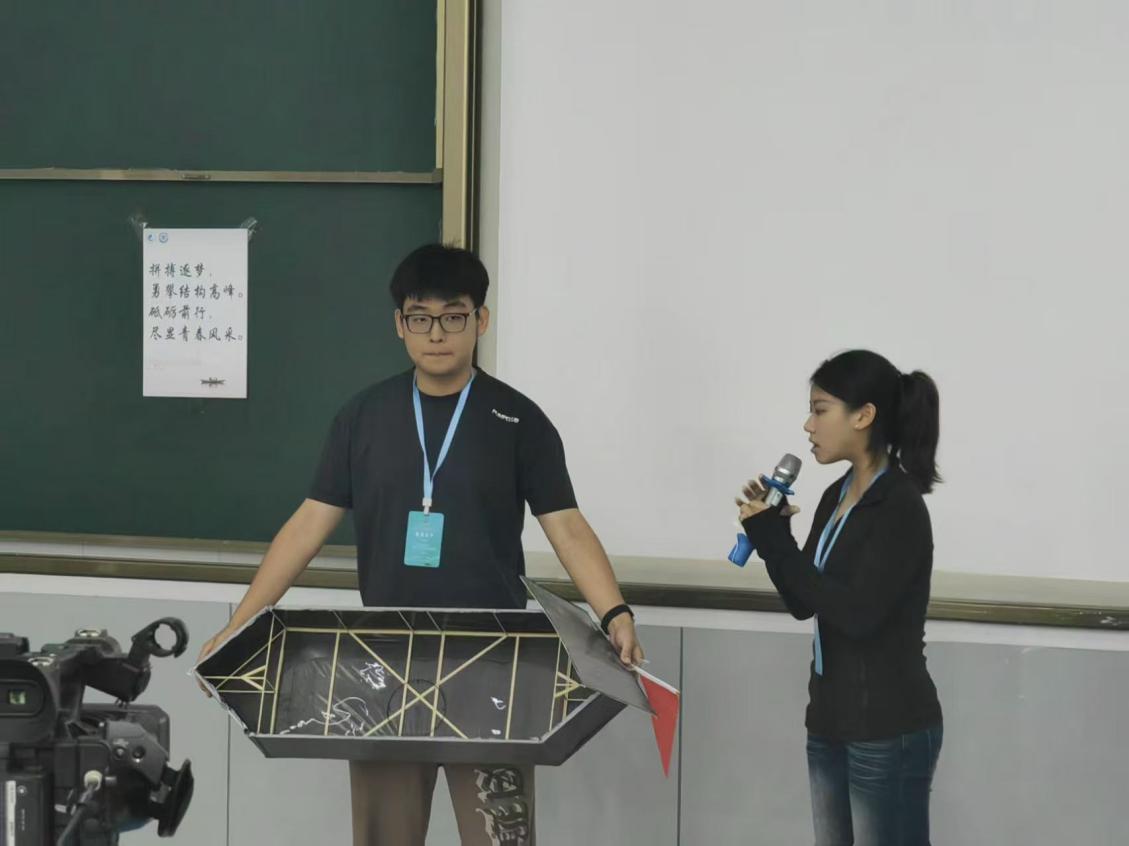 赛场风采:刘悦(左)、王天怡(右)进行模型展示及答辩