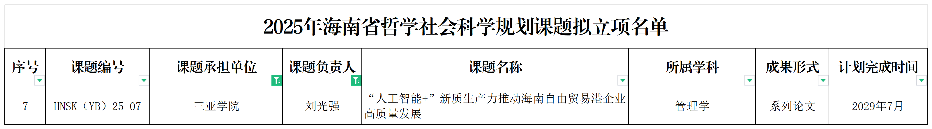 近日,三亚学院财经学院刘光强教授主持申报的《“人工智能+”新质生产力推动海南自由贸易港企业高质量发展》项目,成功获批2025年海南省哲学社会科学规划课题立项。该研究立足国家发展新质生产力战略与海南自贸港建设需求,致力于破解企业数字化转型中的核心理论瓶颈与实践路径难题。