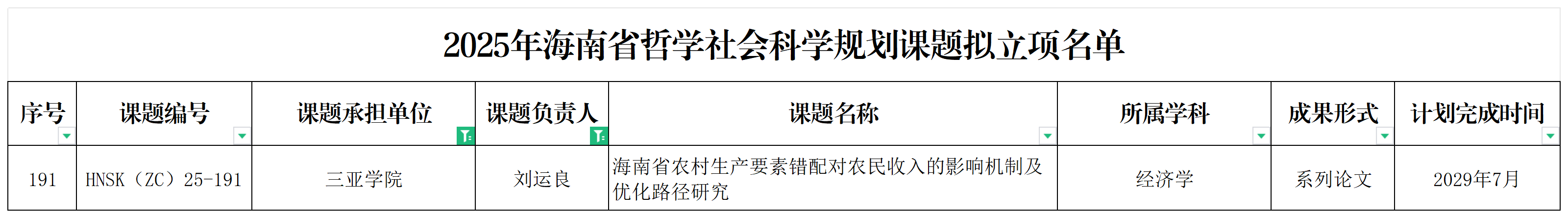 近日,我院刘运良老师主持申报的《海南省农村生产要素错配对农民收入的影响机制及优化路径研究》项目,成功获批2025年海南省哲学社会科学规划课题立项,这是我院聚焦海南自贸港建设需求、深耕地方经济社会发展研究的又一重要成果。