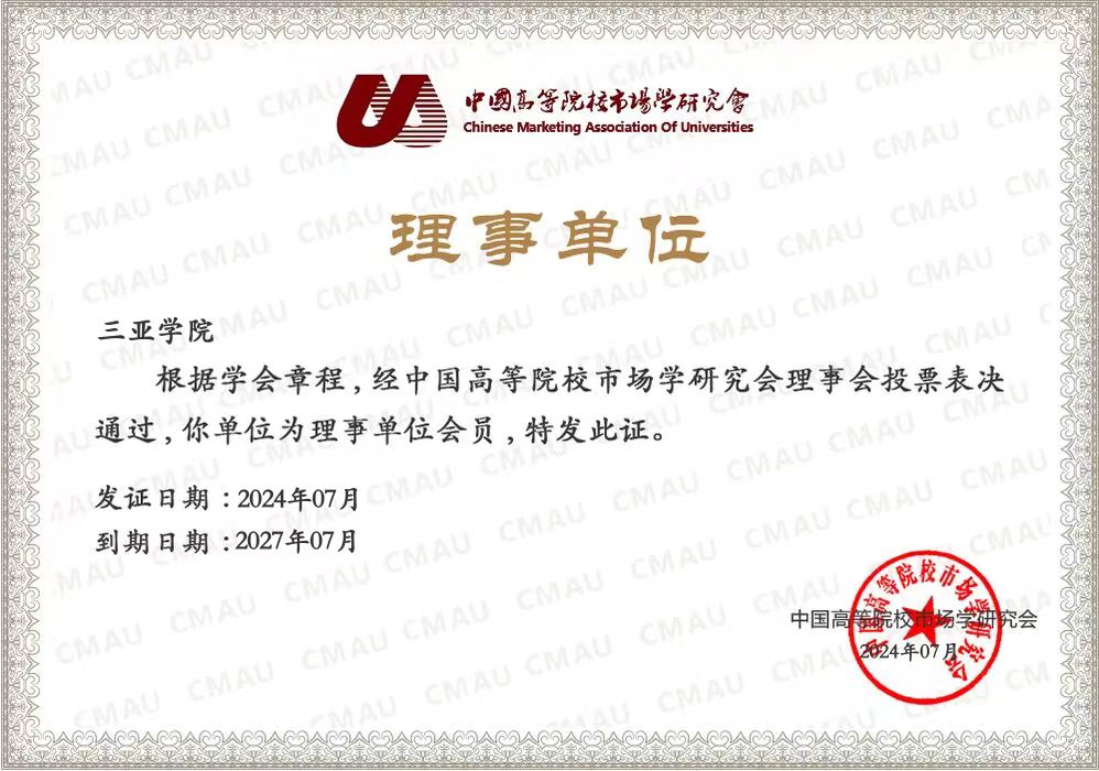 三亚学院管理学院自2024年7月起正式获颁中国高等院校市场学研究会理事单位,这一荣誉标志着学院在市场营销学科领域的学术影响力和专业地位得到进一步提升,也为学院的学科建设与发展注入了新的活力。