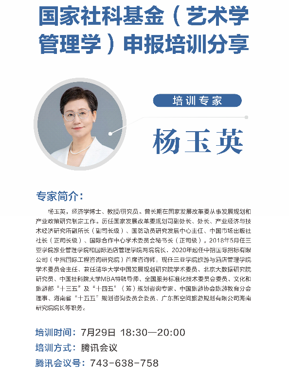 为提升教师科研素养与项目申报水平,助力国家社科基金项目申报工作,7月29日下午,三亚学院管理学院积极组织教师参加了学校举办的2025年暑期项目申报辅导会——国家社科基金(艺术学 管理学)申报培训分享会。此次培训以线上腾讯会议室形式开展,管理学院教师们热情高涨,齐聚“云端”认真聆听学习。