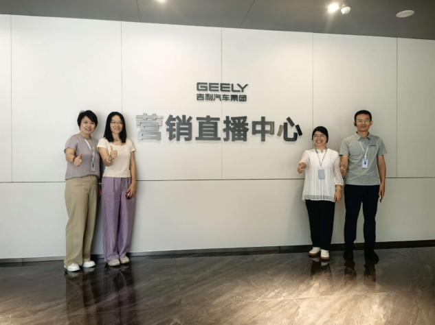 8 月 12日,三亚学院管理学院四位在吉利汽车挂职锻炼的王新爱、熊爱玲、闫磊和陈欣欣老师,走进位于杭州市萧山区吉利集团新落成办公大楼 —— 吉行大厦内的吉利汽车直播基地,实地探访汽车新零售时代下直播营销的创新实践。