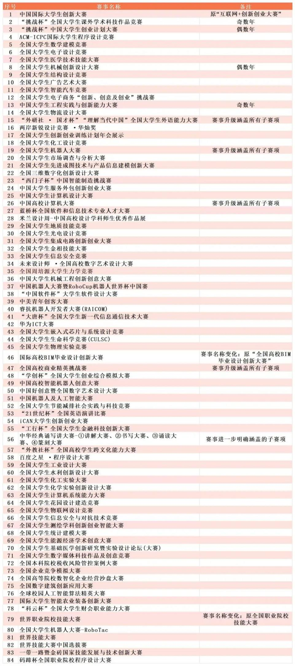 高等教育学会每年发布的“普通高校大学生竞赛分析报告”,也就是所谓的“竞赛榜单”,含金量非常高!从承载创新教育使命的"中国国际大学生创新大赛""挑战杯"等老牌A类赛事,到聚焦专业纵深的特色学科竞赛,已构建起覆盖多学科领域、贯通创新链条的立体化竞技平台。