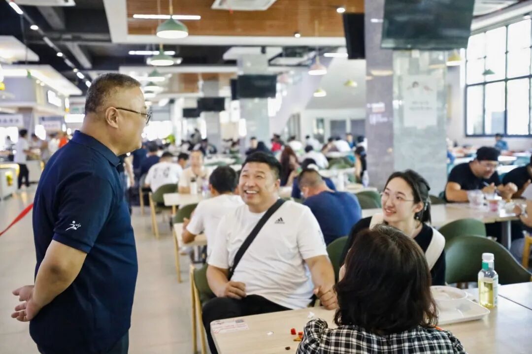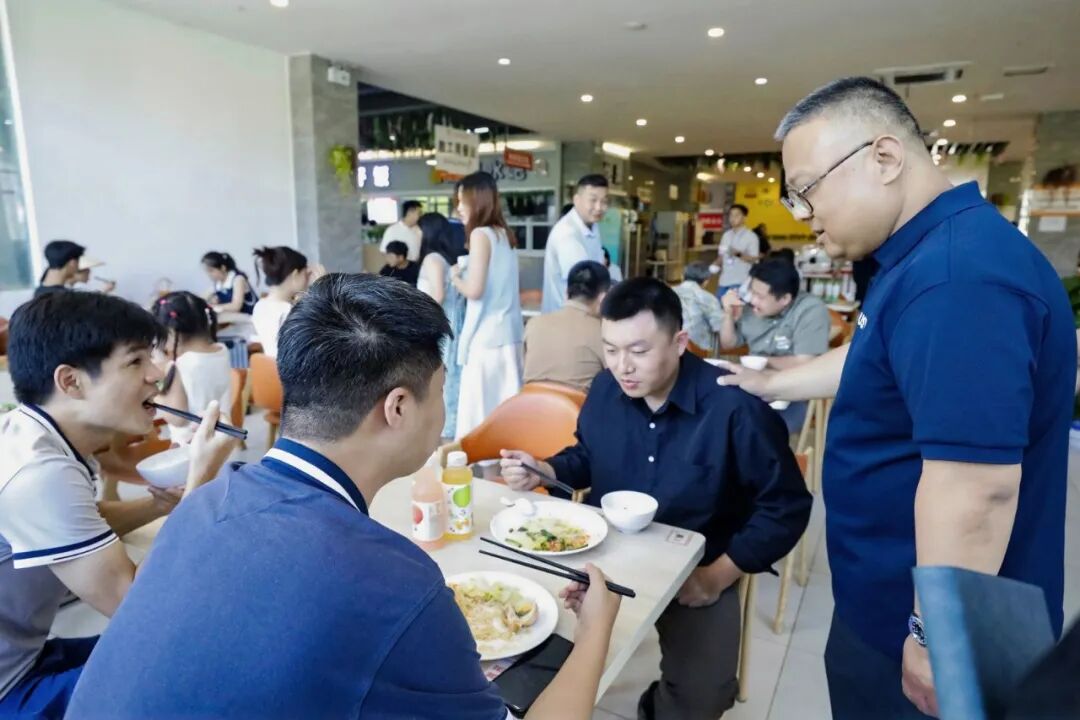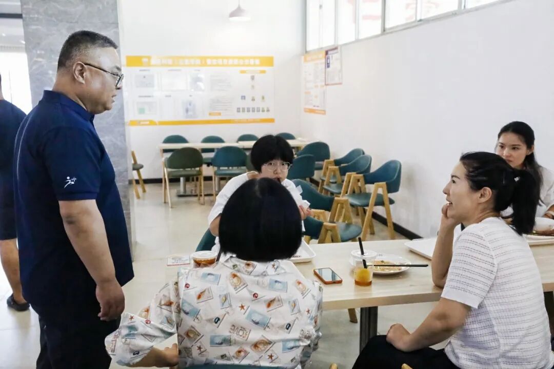 校长亲切地询问大家“吃得惯吗?”,还鼓励学生和家长们畅所欲言:“大家尽管提意见,喜欢吃什么、有什么建议,都是我们把食堂办得更好的关键。”他认真聆听着每一个反馈,并作出解答,这番真诚的互动,让人感受到了学校的细心与周到。