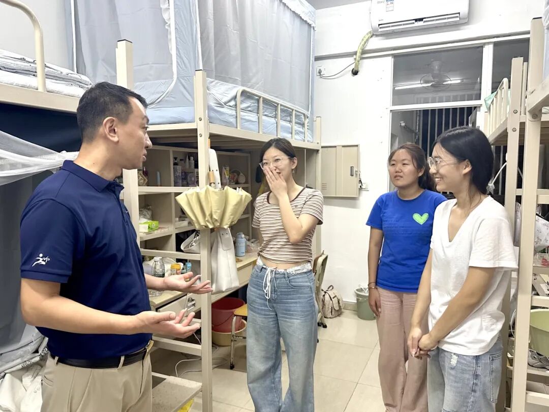 走访过程中,老师们与同学们进行了亲切的交流,细致地询问大家来自哪里是否适应、气候饮食是否习惯,以及日常生活中还有哪些具体困难,还贴心提醒同学们要互相关照,共同营造一个安全、温馨、和谐的居住环境。