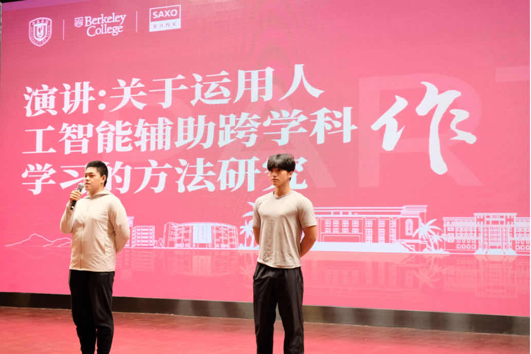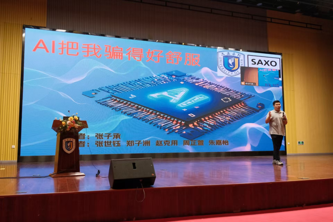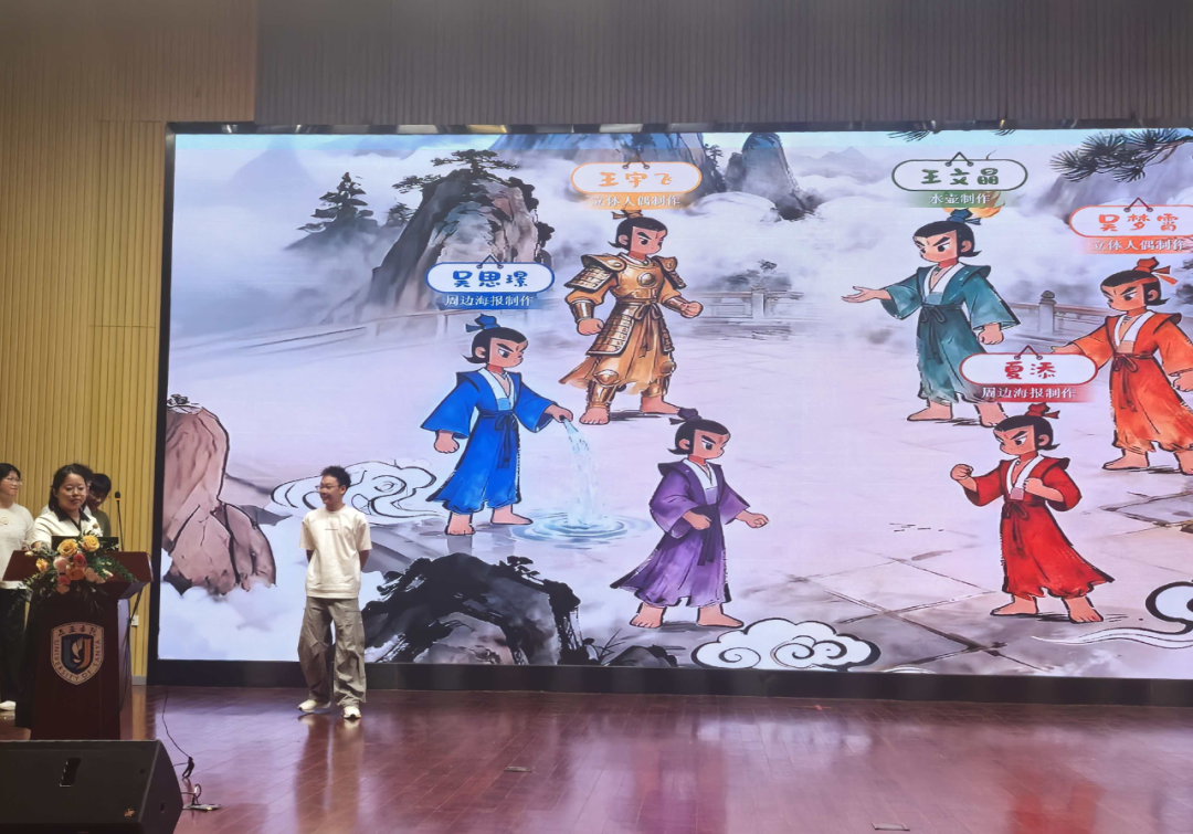 开学典礼现场,来自8个团队融合AI技术与跨学科思维的作品轮番亮相,每一份作品都藏着新生们的巧思与探索:AI生成歌曲的现场演唱,用科技赋予音乐新的生命力,动人旋律赢得全场掌声;AI制作网页将便捷与创意融入日常,展现技术对生活的温柔赋能;以“AI辅助跨学科学习”为主题的演讲,用实例拆解应用路径,让理论不再遥远;“与AI辩论”的精彩交锋搭配电子时间储存器的展示,让思辨与科技碰撞出奇妙火花;椰汁商务谈判与在线直播视频,将AI技术嵌入专业场景,尽显实践智慧;葫芦娃周边则让经典IP与AI设计相遇,勾起情怀的同时更显创意;而“AI时代何为人之价值”“AI能否代替人类”的深度议题,更是引发全场对科技与人性的思考,让作品展不止于“展示”,更在于“启发”。