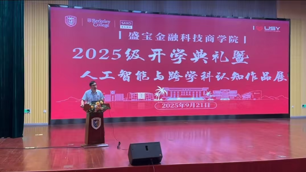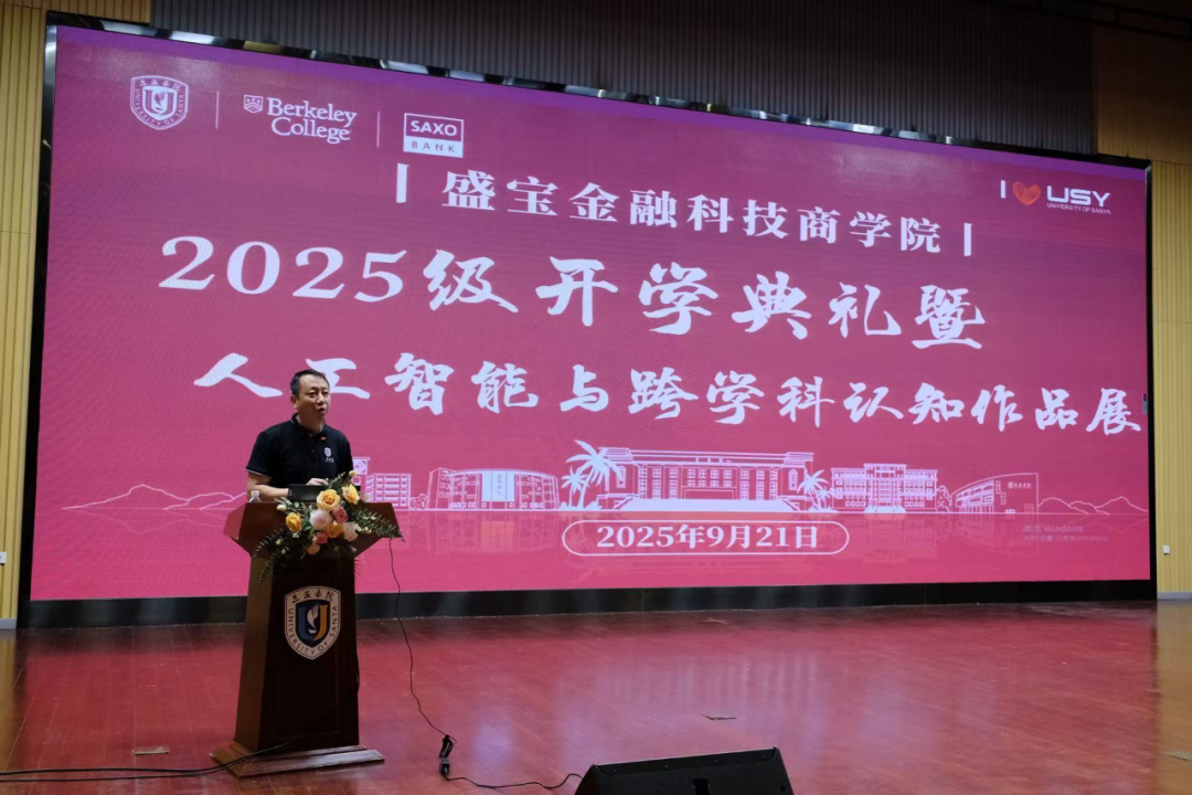 9月21日,盛宝金融科技商学院2025级开学典礼暨人工智能与跨学科认知作品展隆重举行。怀揣着对未来的憧憬与热忱,2025级全体新生齐聚一堂,在庄严仪式中开启大学崭新篇章,在创意作品里触摸人工与跨学科融合的无限可能。学院领导班子、系部主任、专业负责人、行政人员、教师代表及2025级全体新生参加,典礼由副院长王涛主持。