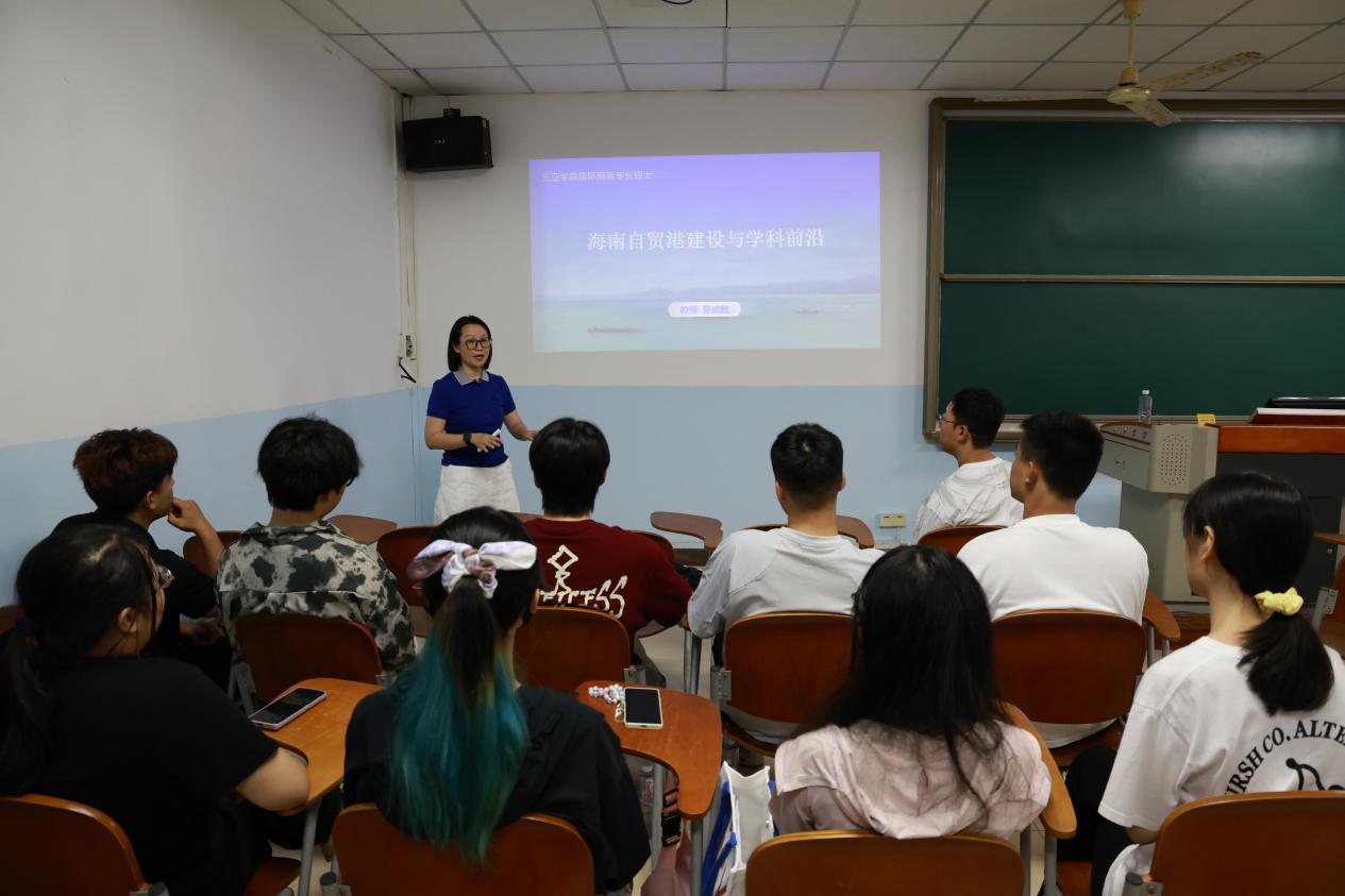 张成甦副教授以“海南自贸港建设与学科前沿”为题,结合海南自贸港建设急需研究领域,她从中国餐饮工业化发展的视角出发,为同学们分析如何将热点事件与专业方向结合寻找自身感兴趣的研究选题。她通过解读2025年海南省哲学社会科学专项课题指南、海南智库论坛征文活动等,为同学们分析如何结合自己所学的专业、个人兴趣爱好等,逐渐找到自己的研究兴趣所在。